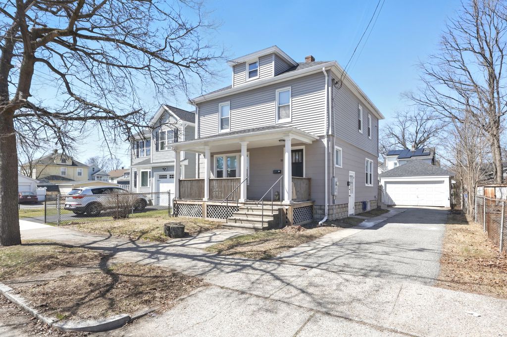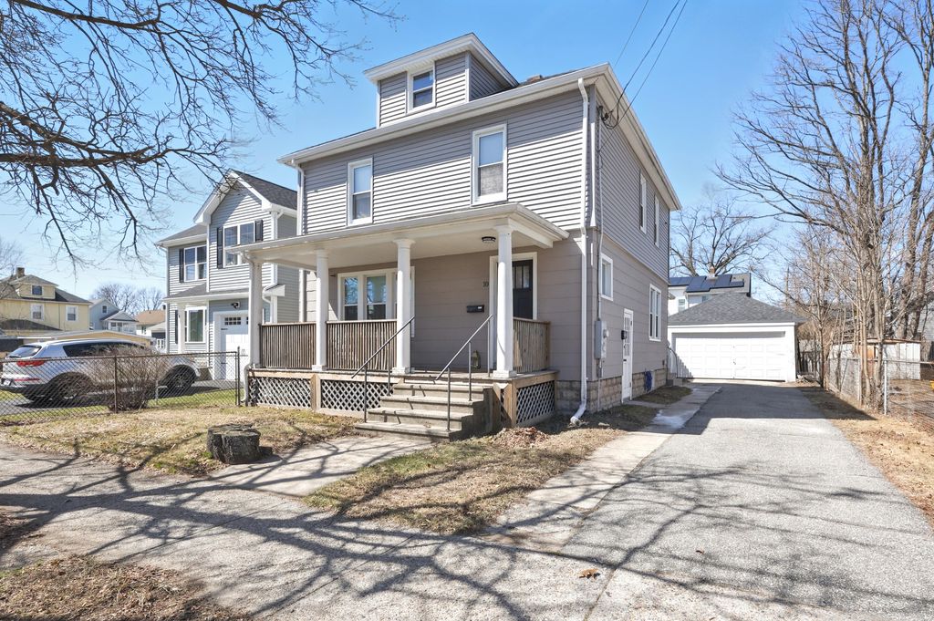 Beautifully Renovated Colonial, where high ceilings and an open floor plan create a bright and inviting retreat. Professionally renovated in 2018, this home features newer roof, windows, siding, porch with railings, and garage door—blending timeless charm with modern convenience. Expansive kitchen is a chef’s dream, offering ample cabinetry, sleek stainless steel appliances, & generous space for cooking and entertaining. Hardwood flooring flows seamlessly throughout, complemented by tile in the bathrooms. First floor also includes a convenient laundry room and half bath.This home has been meticulously updated, with a hot water tank (1 year), and a mini-split system on the first floor for year-round comfort. Electrical and plumbing was also upgraded during renovation. A fully fenced-in yard provides added privacy—perfect for relaxing, entertaining, or pets.With modern updates throughout, this move-in-ready home is waiting for you to make it your own!