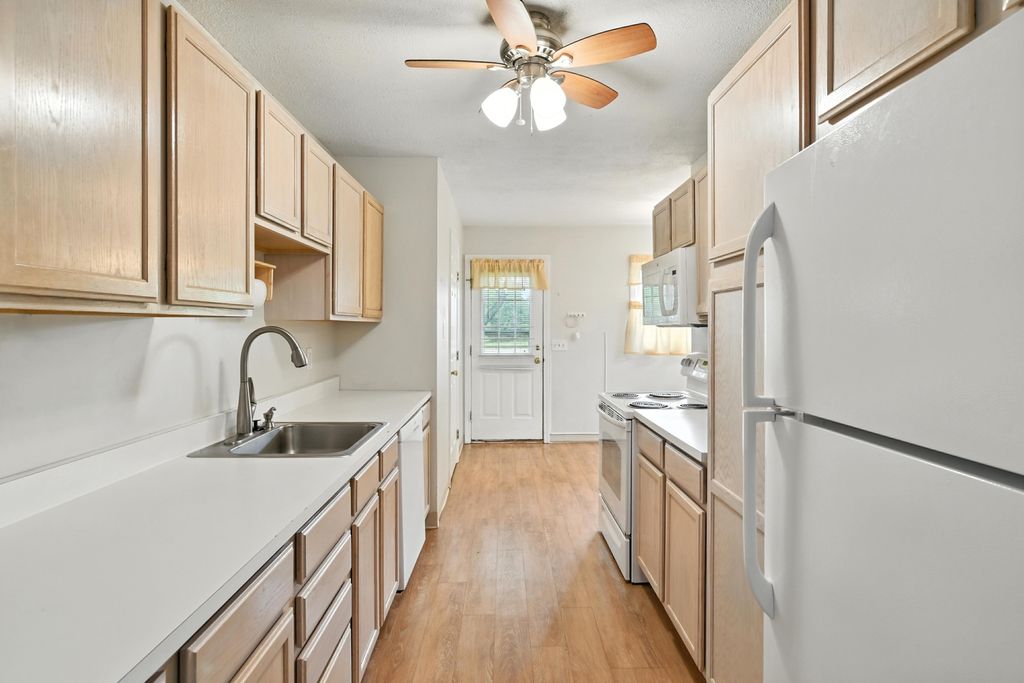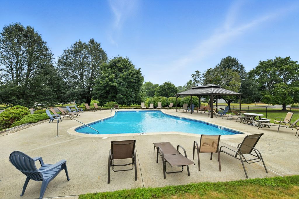 Tucked within The Crossing at Ridgewood Village, this impeccably maintained end-unit condo offers the ease of one-floor living with thoughtful extras throughout. A spacious galley kitchen with dining area includes a custom pantry closet, while the oversized living room impresses with a vaulted ceiling and expansive picture window, ideal for relaxed gatherings. Two generously sized bedrooms each feature custom closets, and the full bath includes an in-unit laundry area. Central air conditioning has been updated for added comfort. A partially finished basement extends the living space, perfect for a flexible bonus area. Enjoy the privacy of an end unit along with access to a clubhouse, pool, and tennis court—creating a welcoming and well-appointed community setting.