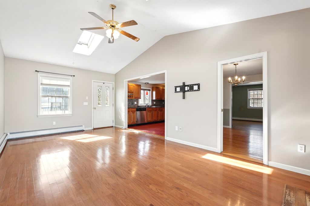 Welcome to this clean and beautiful 4-bedroom, 2-bathroom home situated on nearly half an acre of land on a corner lot, directly across from Minnechaug High School and just down the street from Wilbraham and Monson Academy. The home features two good-sized bedrooms on each floor, offering plenty of space. There is a bathroom on both floors, ensuring convenience for everyone. The bright and sunny living room includes a cozy fireplace. A separate dining room is perfect for holiday celebrations. The spacious entertainment room boasts vaulted ceilings and large windows that fill the room with natural light. A sliding door from the entertainment room leads out to a deck, offering easy access to the outdoor space for relaxation and gatherings.The property includes a convenient shed for extra storage, ideal for gardening tools, outdoor equipment.With its prime location, abundant natural light, and functional layout, this home is an ideal choice for those seeking both comfort and convenience