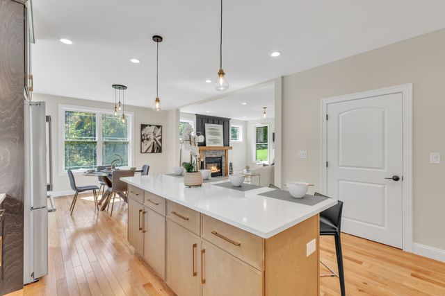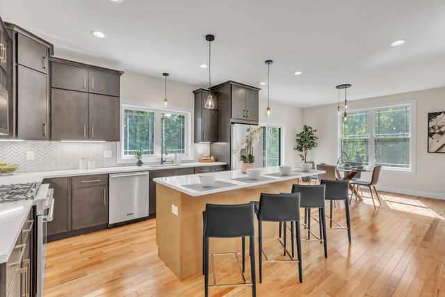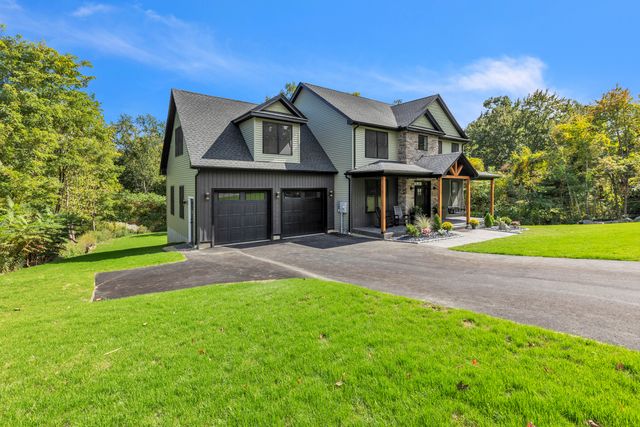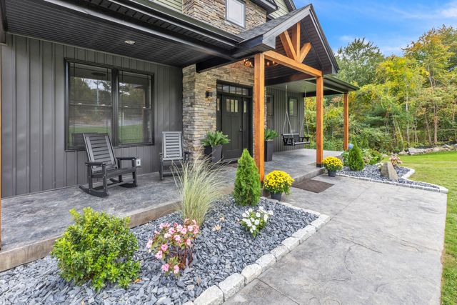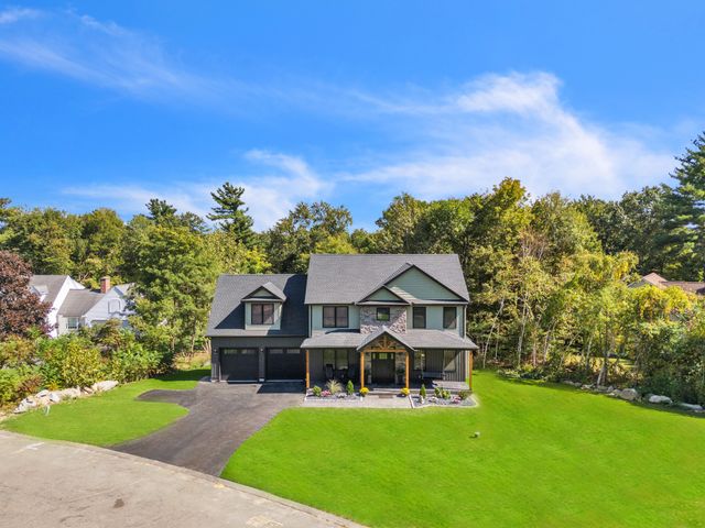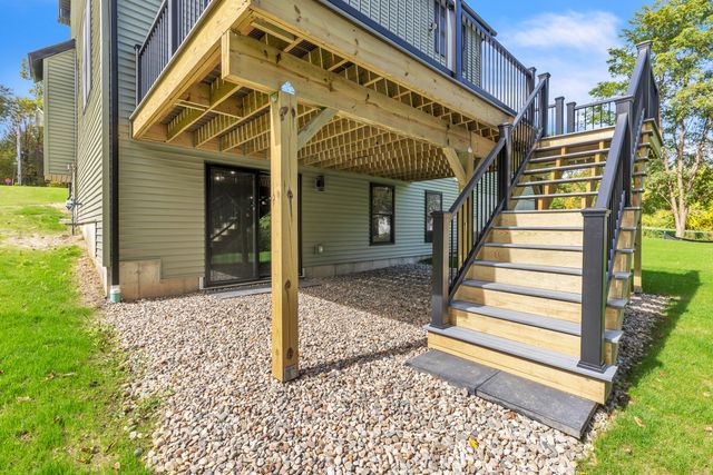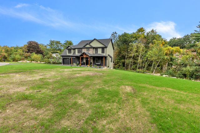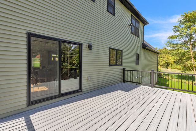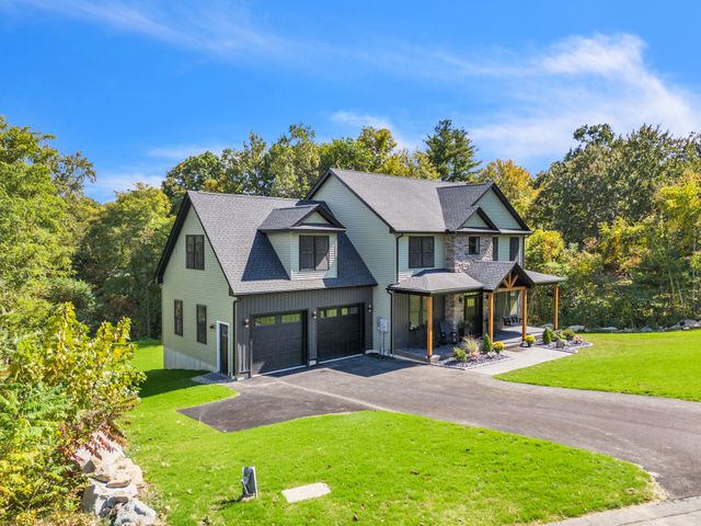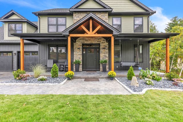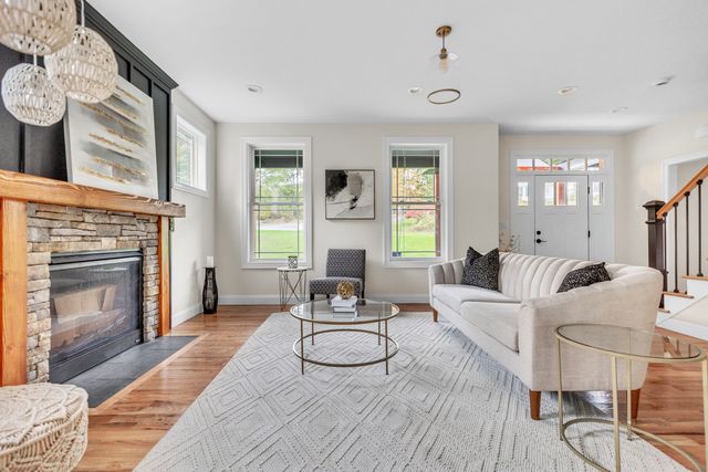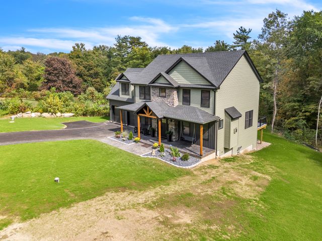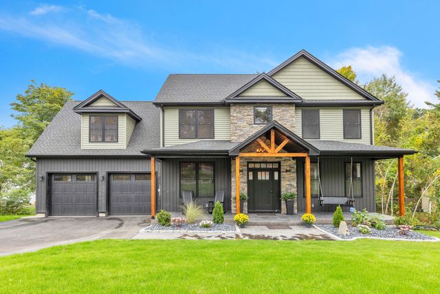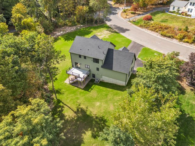 Welcome to your custom-built two-story home. With beautiful curb appeal and a welcoming front porch, this property invites you to enjoy peaceful surroundings. This stunning colonial-style home exudes elegance and sophistication. It features four spacious bedrooms and three full bathrooms. The primary bedroom serves as a private retreat, offering double sinks, radiant floors, a luxurious shower, and a walk-in closet. Hardwood floors ensure exceptional comfort and style throughout. The kitchen’s upper and lower cabinetry provides ample storage, while the clean lines and neutral tones harmonize with the light stone countertops and herringbone backsplash. The open living design and stone fireplace blend exceptional craftsmanship and style, perfect for both entertaining and relaxation. Outdoors, a 16x20 deck overlooks the private yard, offering a serene setting for outdoor living. Step into your forever home.