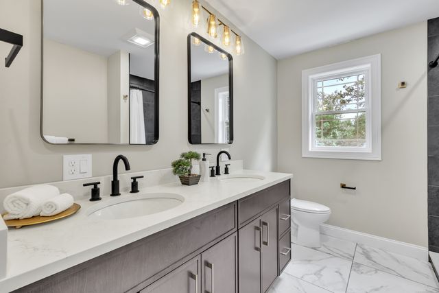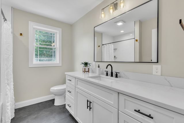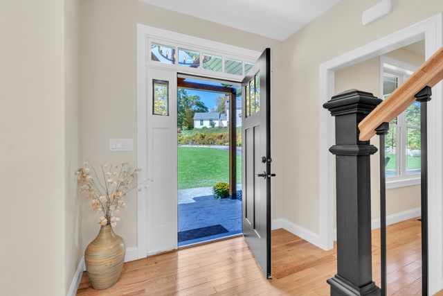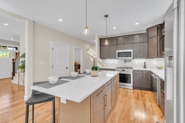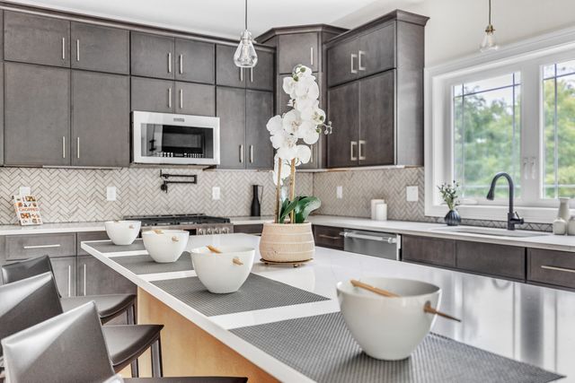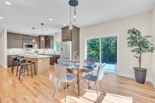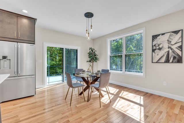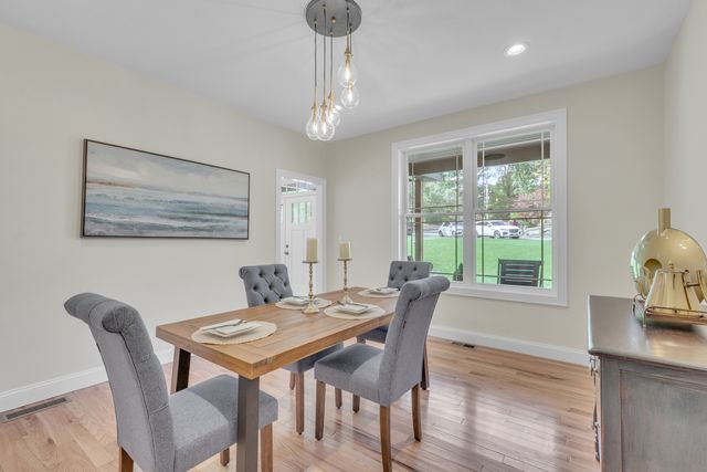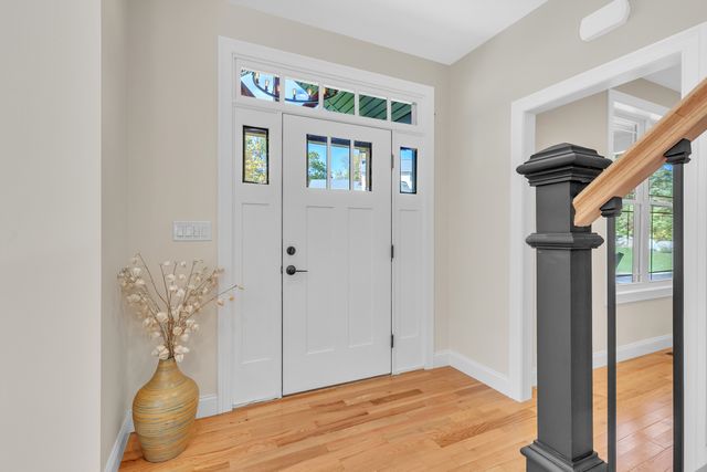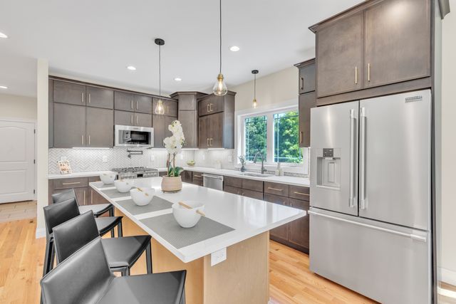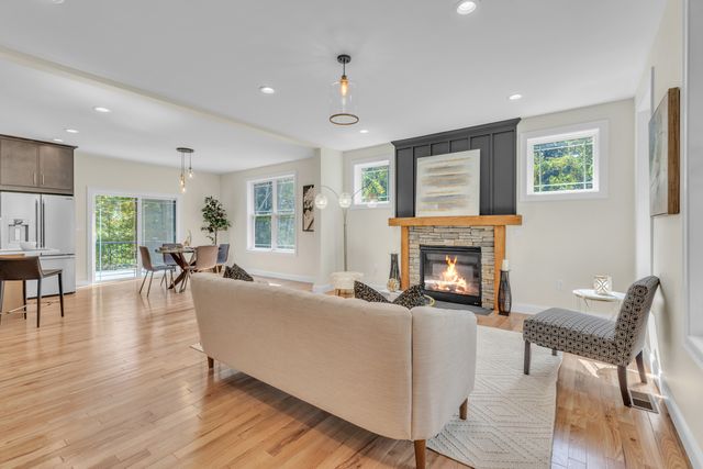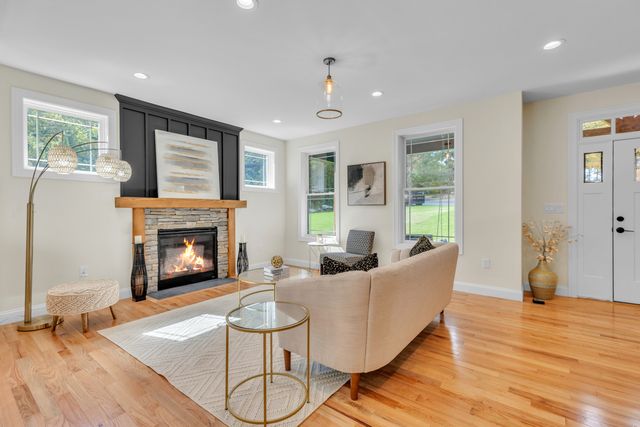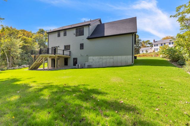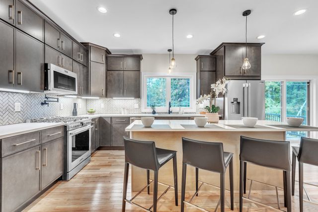 Welcome to your custom-built two-story home. With beautiful curb appeal and a welcoming front porch, this property invites you to enjoy peaceful surroundings. This stunning colonial-style home exudes elegance and sophistication. It features four spacious bedrooms and three full bathrooms. The primary bedroom serves as a private retreat, offering double sinks, radiant floors, a luxurious shower, and a walk-in closet. Hardwood floors ensure exceptional comfort and style throughout. The kitchen’s upper and lower cabinetry provides ample storage, while the clean lines and neutral tones harmonize with the light stone countertops and herringbone backsplash. The open living design and stone fireplace blend exceptional craftsmanship and style, perfect for both entertaining and relaxation. Outdoors, a 16x20 deck overlooks the private yard, offering a serene setting for outdoor living. Step into your forever home.