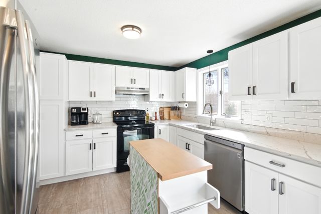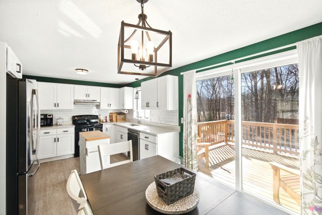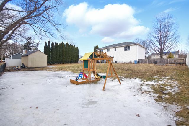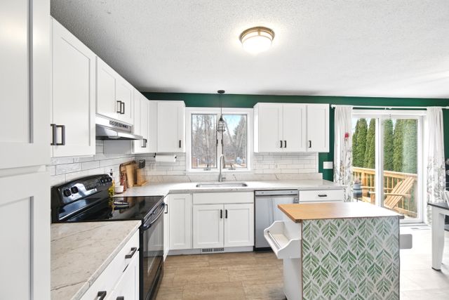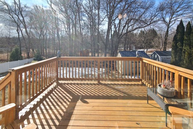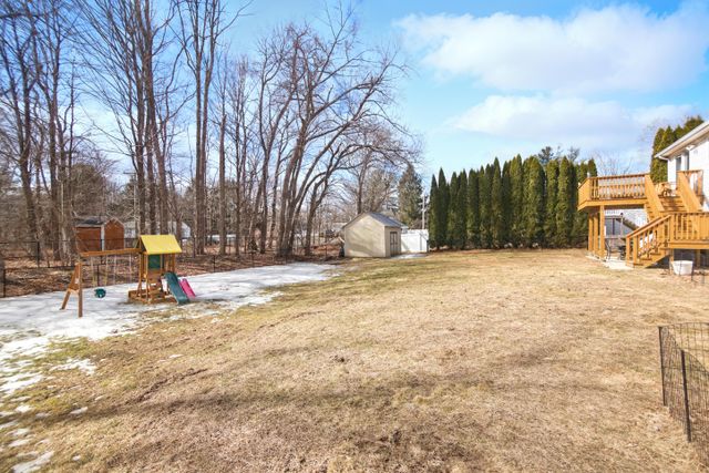 Welcome to this immaculate home, nestled in a desirable family-friendly neighborhood. The heart of the home features a warm and inviting eat-in kitchen, offering ample counter space and abundant cabinetry, with all appliances included for the home chef. The kitchen opens to a spacious deck overlooking a private yard—ideal for summer BBQs and outdoor gatherings. Inside, the cozy living room boasts beautiful hardwood floors and a charming brick fireplace, creating the perfect atmosphere for entertaining. The master bedroom suite is generously sized, with gleaming hardwood floors and a convenient half bath. Two additional spacious bedrooms and a bright, updated full bathroom complete the main floor. The finished lower level offers a large family room, adding valuable living space and access to the patio and two-car garage. Additional features include efficient gas heat, central air, a sprinkler system, and proximity to shops, schools, and highway access, with easy access to the CT state line. This home is ready for its next family to love and enjoy!