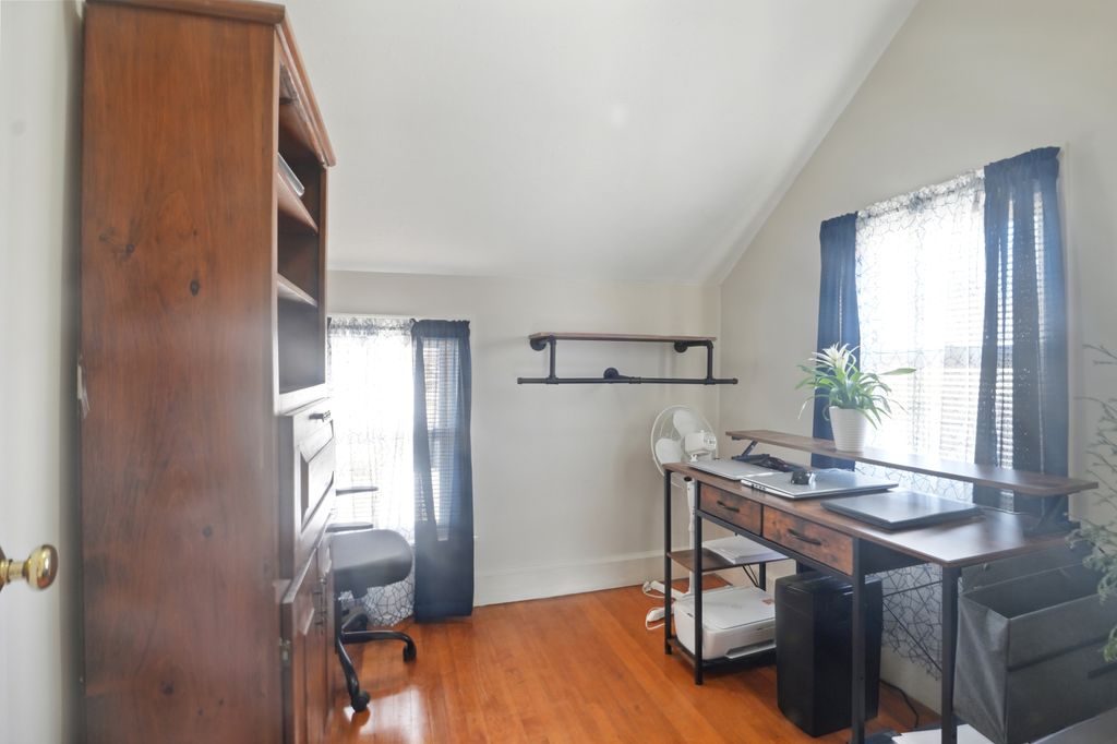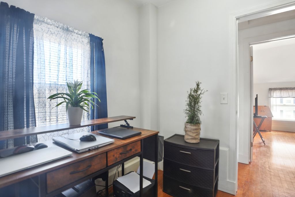Tucked into a well-situated community near scenic local ponds, this charming 3-bedroom, 1-bath condo-townhome offers 680 sq ft of well-utilized space. Hardwood floors flow through the sunlit living room and all upper-level bedrooms that offer comfort and functionality. The eat-in kitchen features vinyl flooring and an adjoining dining area, ideal for casual meals. A full bath on the main level adds convenience, while proximity to Routes 146, I-495, I-295, and I-90 ensures an easy commute. Whether you're relaxing indoors or exploring the nearby natural beauty, this home offers a harmonious blend of accessibility and charm.