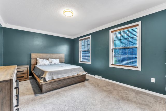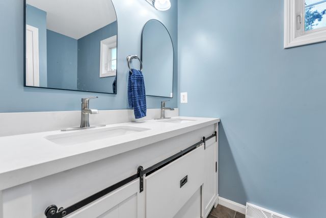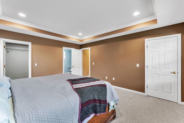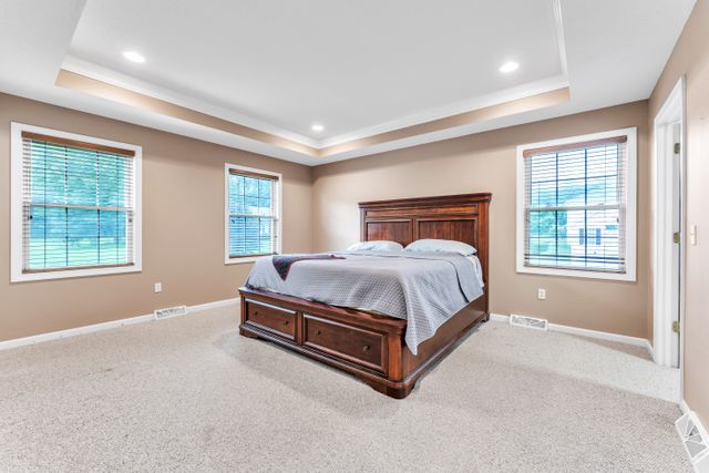 The master suite is a luxurious retreat, complete with elegant tray ceilings and not one, but two spacious walk-in closets designed for him and her. The master bath, along with the two other updated bathrooms, offers a spa-like experience with contemporary finishes and sophisticated details.