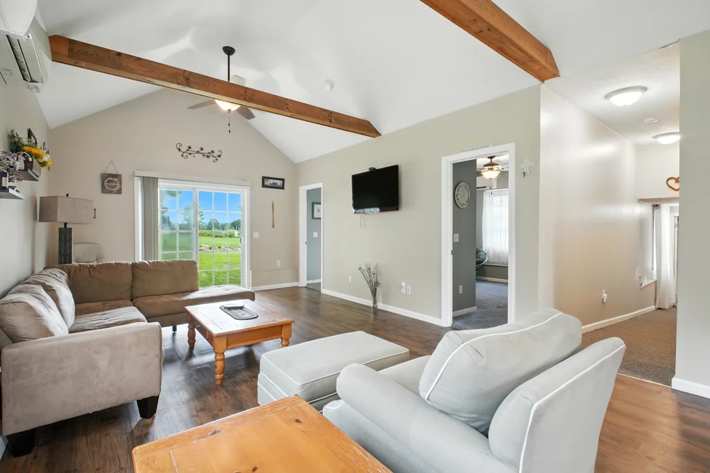 Enjoy the spectacular sunrise views and all this home has to offer! This is a unique opportunity to own a multi generational home. In-law has two bedrooms, large kitchen dining room area with full bath and it own laundry, it's own entrance and one car garage the garage. The homes sits on 4.76 acres of beautiful farm land. If you would also like some chicken or a very large garden this is the one maybe what you have been waiting for. Three car garage, whole house on demand generator, above ground pool, solar. This home is set up for comfort and opportunity. master suite. total of 5 bedrooms and 3 full baths. basement has a finish bonus room. Call now for a showing.