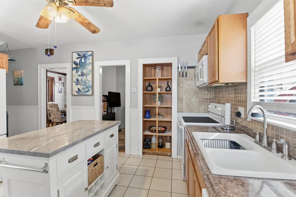 This beautifully renovated 4-bedroom, 1-bath bungalow blends timeless craftsmanship with modern updates across 1,578 sq. ft. of inviting living space. Classic details—stained woodwork, a built-in china cabinet, window seat, crown molding, and gleaming hardwood floors—capture the warmth and character of the bungalow style. The updated kitchen features full appliances and fresh finishes, while the tiled bathroom adds a contemporary touch. Recent improvements include interior and exterior paint, newer roof, windows, heating system, and electrical updates. Ideally situated near Holy Cross College with convenient access to Routes 146 and 290, this move-in-ready home combines comfort, charm, and commuter convenience.