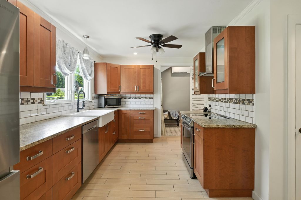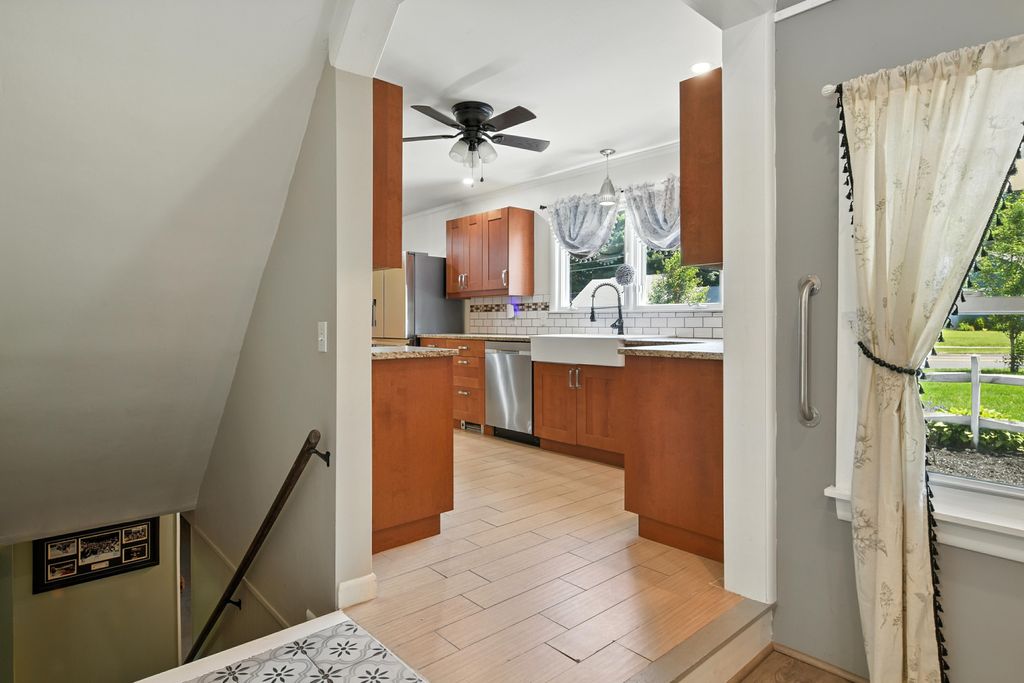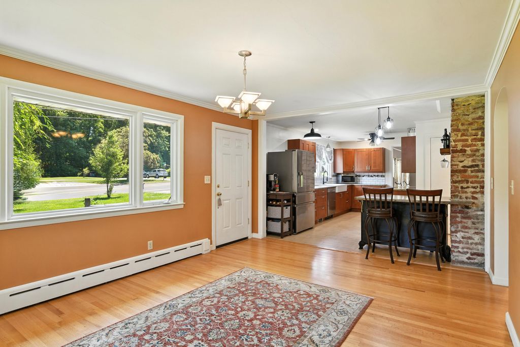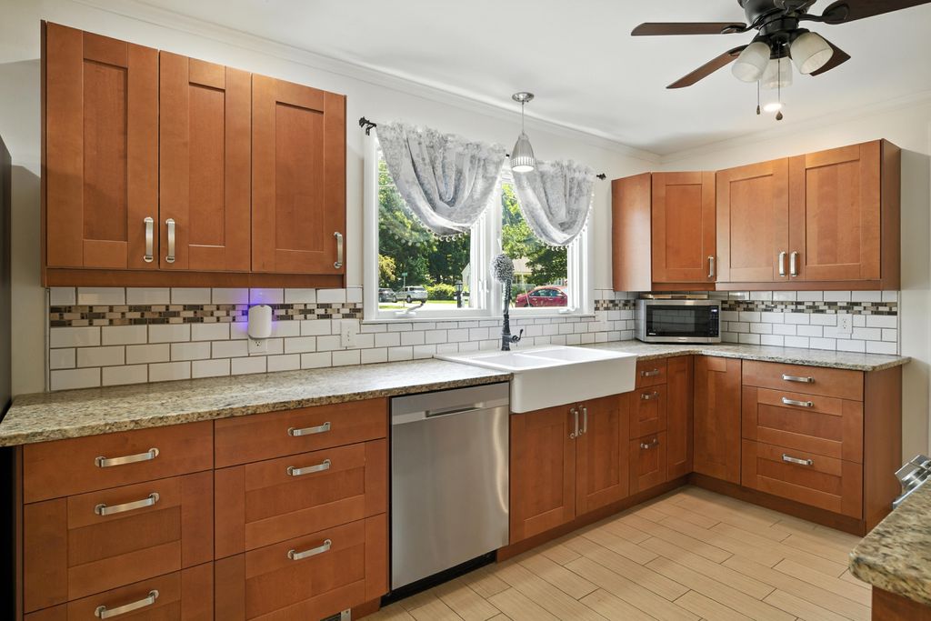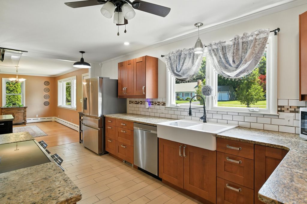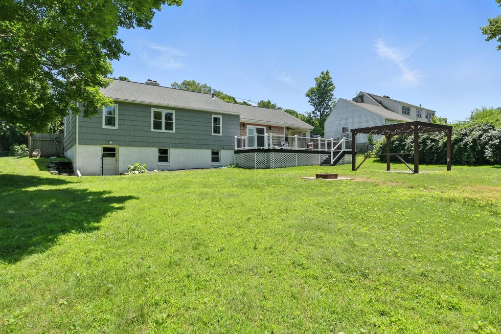 Beautifully updated and move-in ready, this gas-heated ranch is set on desirable Rogers Avenue with a nearly half-acre level lot. The home offers three bedrooms, two full baths, and a seamless blend of comfort and style. The kitchen shines with granite countertops, a tile backsplash, stainless steel appliances, and new or refinished flooring throughout. Step onto the spacious deck overlooking the expansive backyard—perfect for outdoor enjoyment. The partially finished walk-out basement features a cozy family room with a fireplace and a full bath, offering versatile space for relaxation, work, or play. There is ample storage throughout including two separate walk up attic spaces. A wonderful opportunity in a prime location.