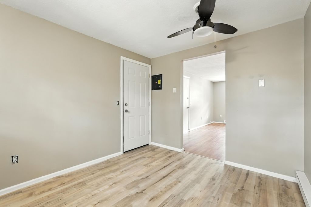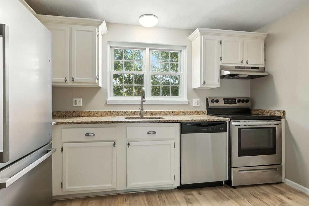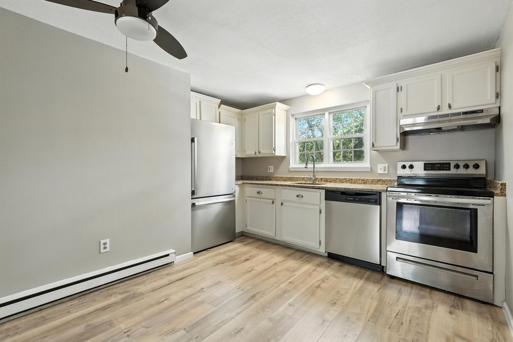 Why rent when you can own this beautifully updated 2-bedroom, 1-bath condominium just moments from highway access and shopping conveniences? Step inside to a spacious living room with sleek laminate flooring, seamlessly flowing into a tastefully remodeled kitchen featuring granite countertops and stainless steel appliances. Both bedrooms offer generous storage, while the refreshed bath impresses with a tiled tub/shower surround, elegant pedestal sink, and charming wainscoting. With thoughtful updates throughout and a move-in-ready condition, this 723 sq ft home blends style, comfort, and everyday convenience. A turnkey opportunity not to be missed.