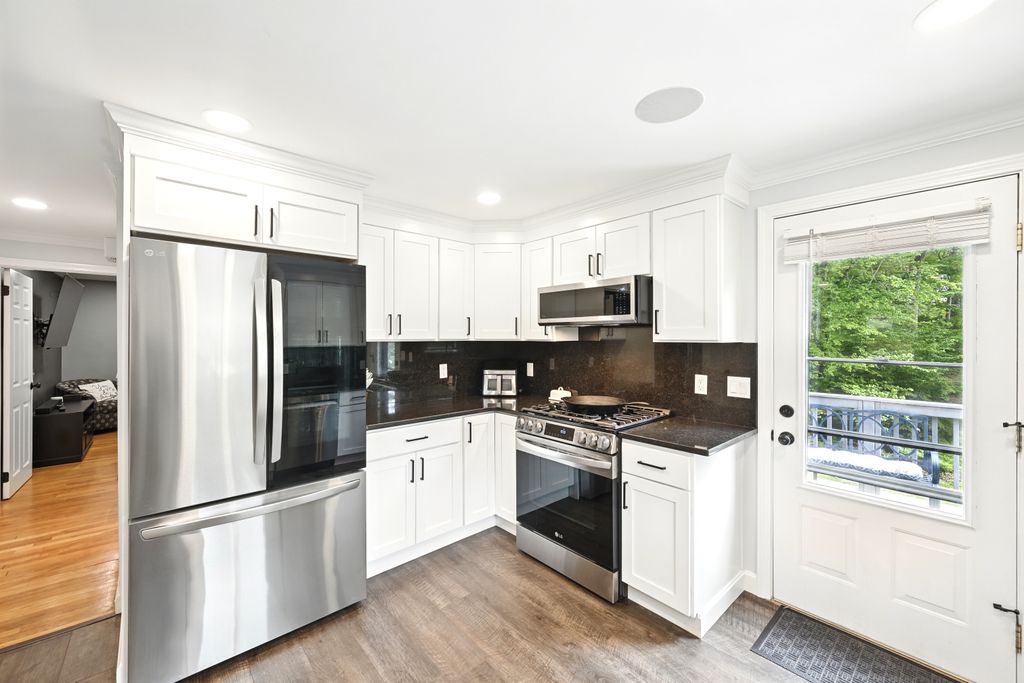 Nestled beside the natural beauty of Harold Parker State Forest, this charming dormered Cape offers comfort, space, and serene surroundings on a generous one-acre lot. The home features 3–4 versatile bedrooms, 2 full baths, and an unfinished walk-out basement, perfect for future expansion. The kitchen and dining area shine with updated flooring, stainless steel appliances, and sleek granite countertops and backsplash. A cozy fireplace anchors the living room, while hardwood floors grace the first level and newer flooring enhances the second. A tranquil path winds through lush woodland, adding a touch of magic to the backyard retreat.