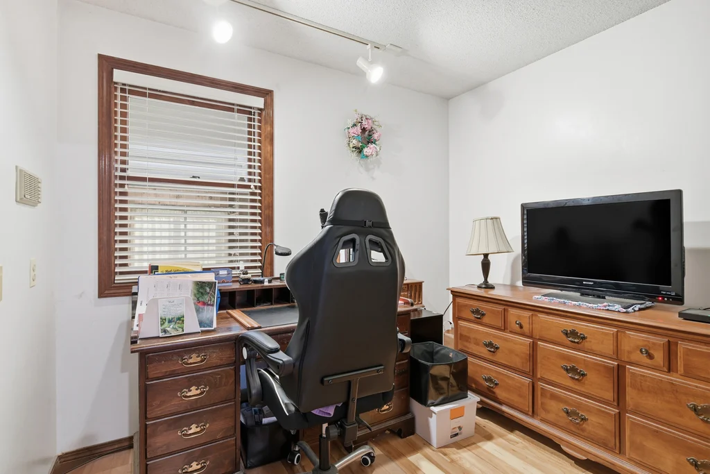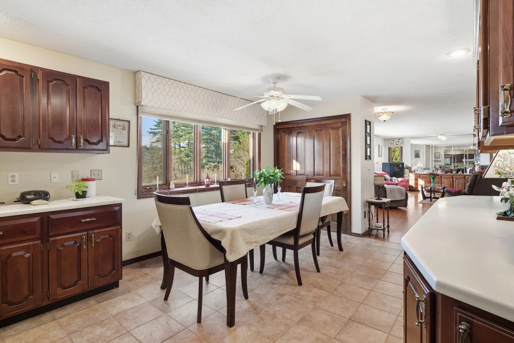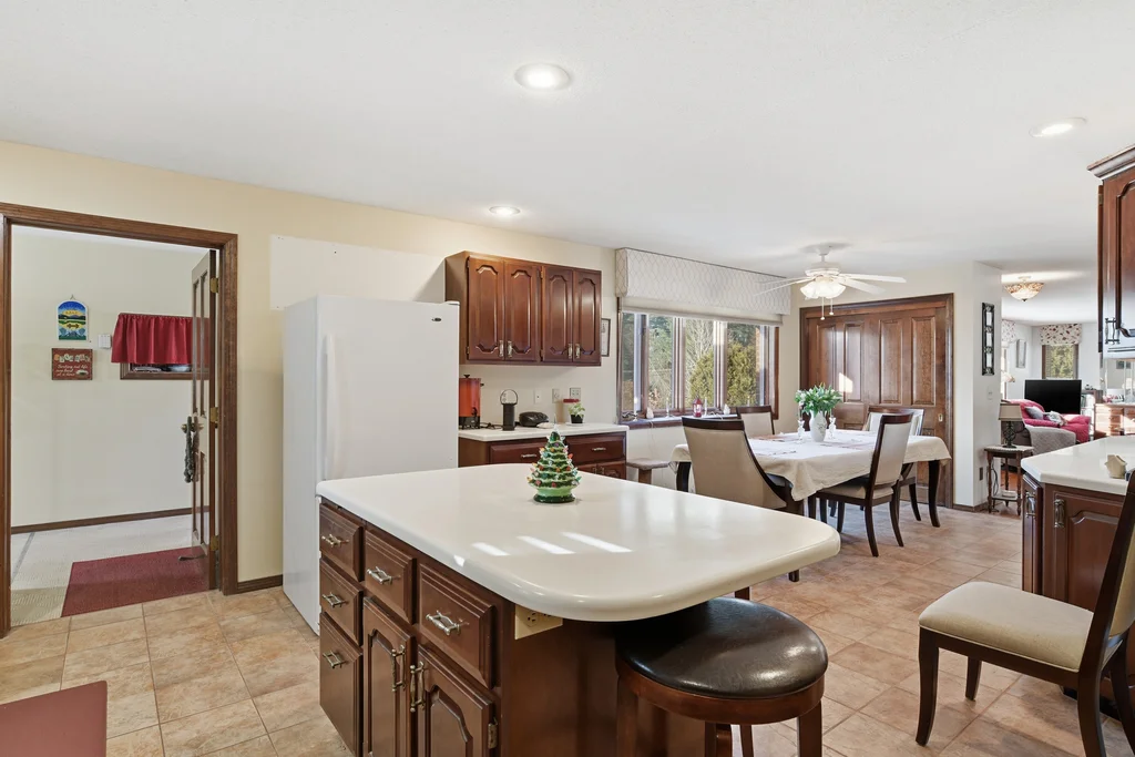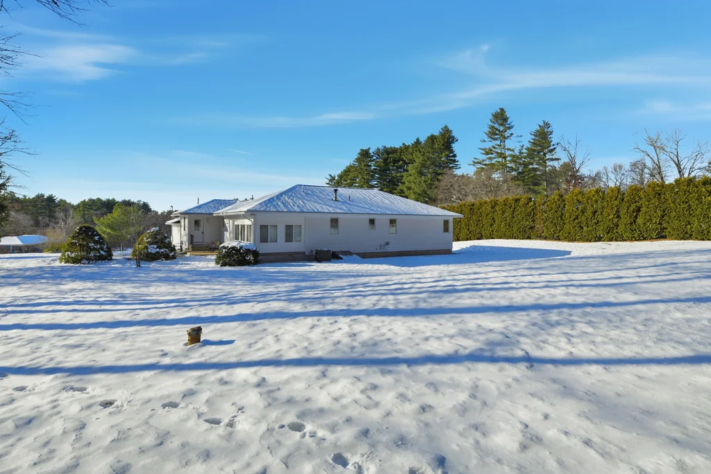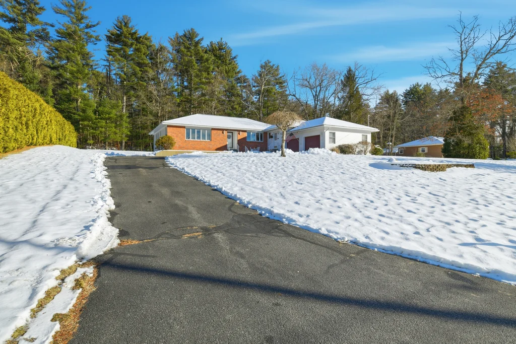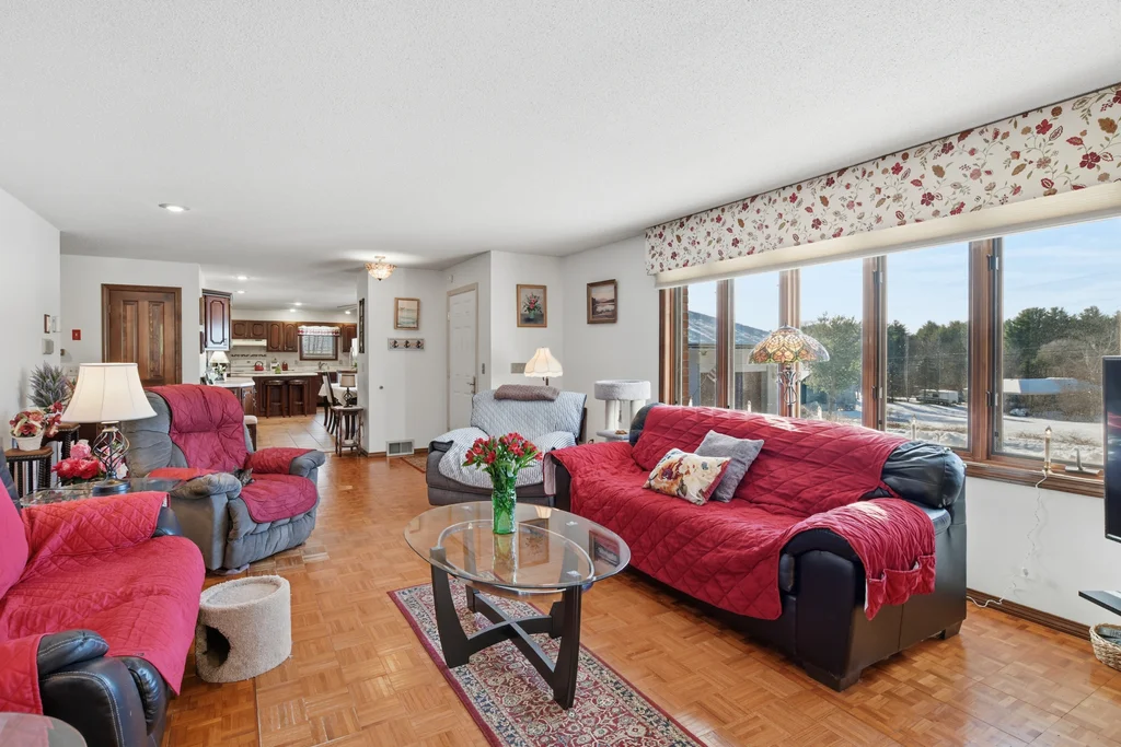 This custom-built executive ranch offers 2,100 square feet of living space on a beautiful 0.70-acre lot. A brand-new entry door welcomes you into the spacious living room featuring teak parquet floors, custom window treatments, a built-in cherry credenza, and a bay window that fills the room with natural light. The living room flows into a large custom kitchen with a dining area, abundant cherry cabinetry, Corian countertops, a coffee or dry bar, center island, tiled floors, pantry closet, and French doors leading to the three-season sunroom. The mudroom off the two-car garage provides ample space for coats and boots, a laundry area with cabinets, washer and dryer included, and a half bath. There’s exterior access to a large patio and a huge basement with storage shelving and a safe room. The primary suite boasts gorgeous wood flooring, 3 generous closets, and a full bath. Additional bedrooms feature newer walnut floors and plenty of closet space. The home also has a brand-new roof, outside sensor lights, and a Generac whole house generator for added peace of mind.