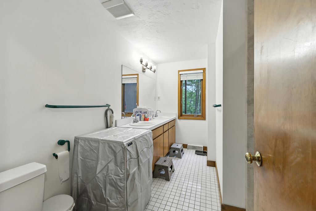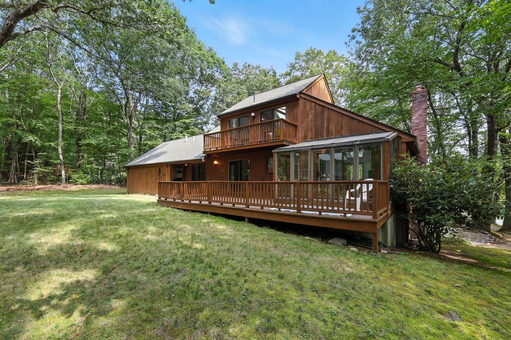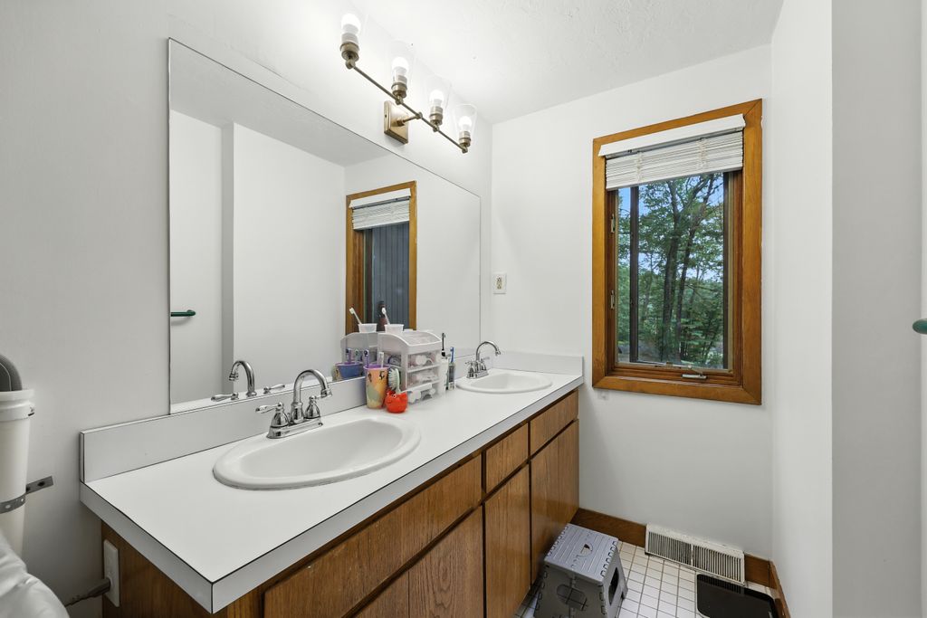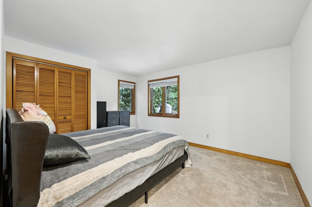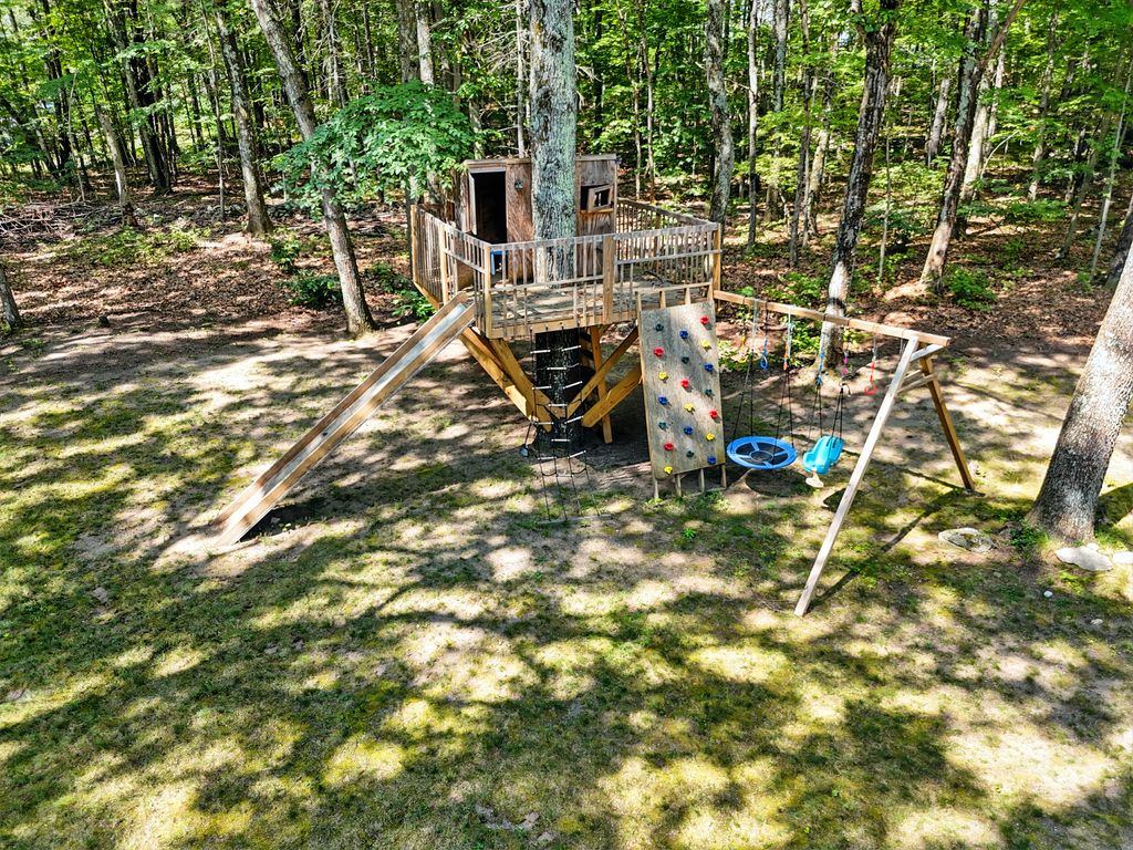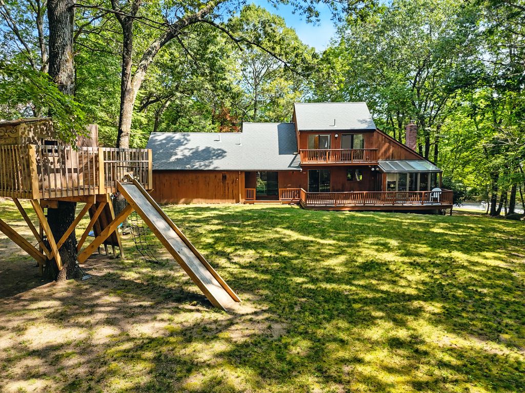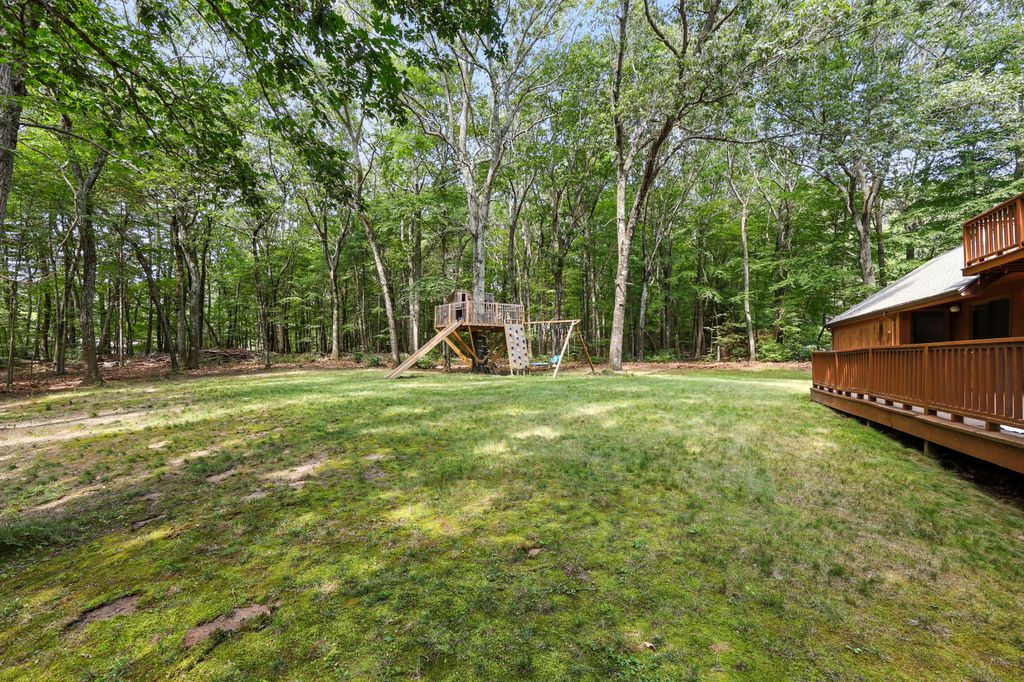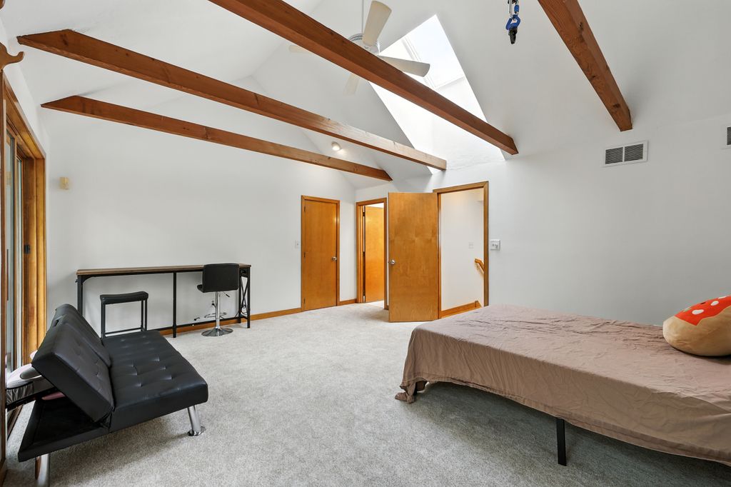 Tucked within a peaceful, wooded setting, this striking contemporary home offers 4 bedrooms, 3 baths, and 2,635 sq ft of beautifully designed living space. A two-car garage and mature trees frame the approach, while inside, cathedral ceilings and skylights bathe the main living area in natural light. The kitchen features sleek, newer appliances and invites culinary creativity. A brick fireplace with a commanding mantle anchors the living room. The main bedroom offers serenity beneath skylights, while a finished walkout basement with a full bath provides versatile space for work or leisure. Freshly painted decks and railings invite moments of quiet reflection amid the surrounding greenery. Ideal for those who value a tranquil lifestyle immersed in nature’s beauty.