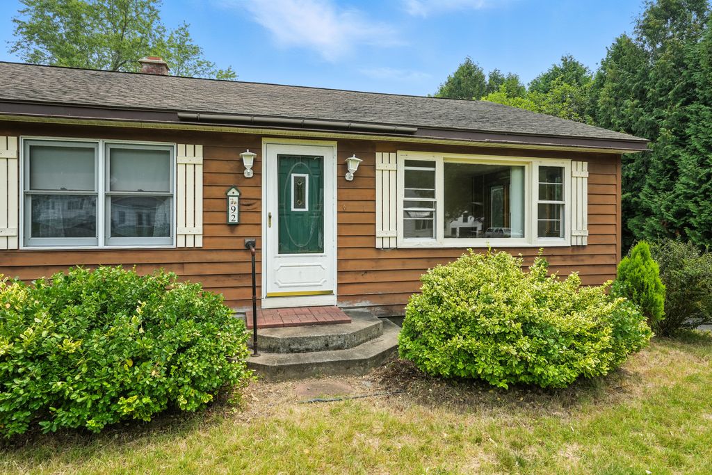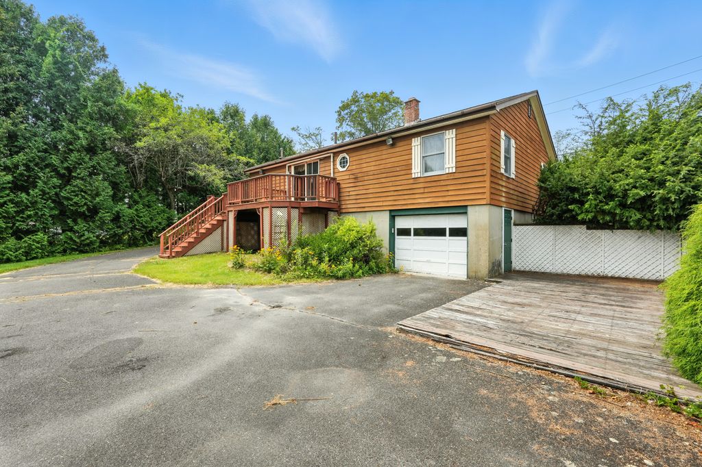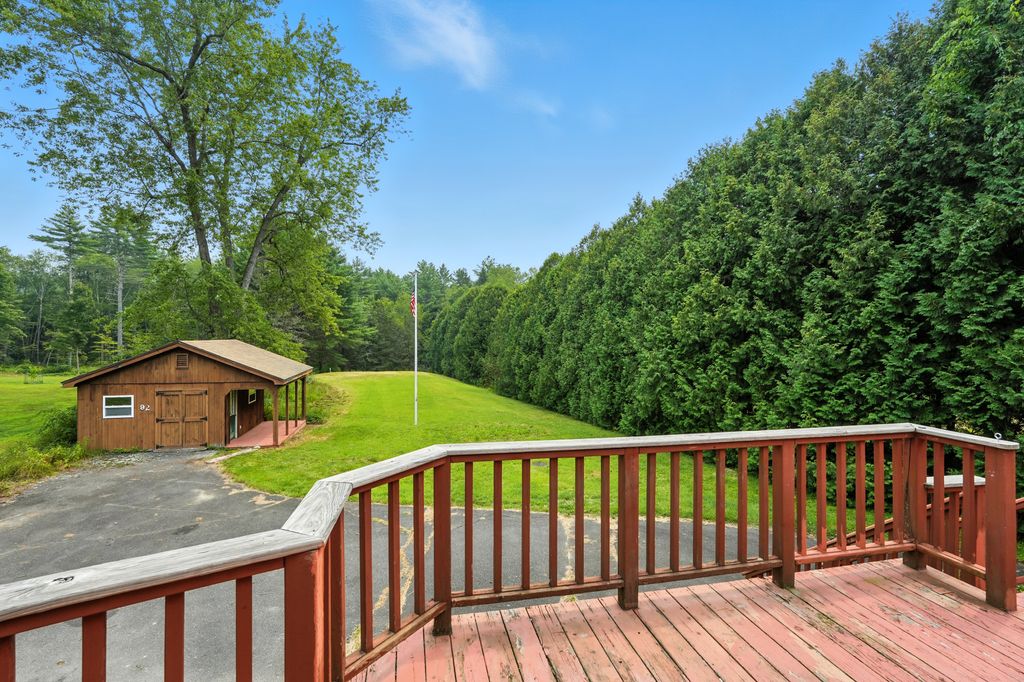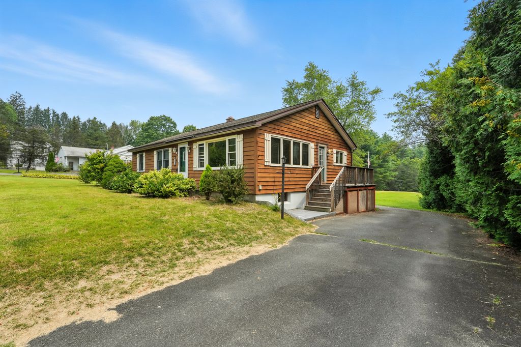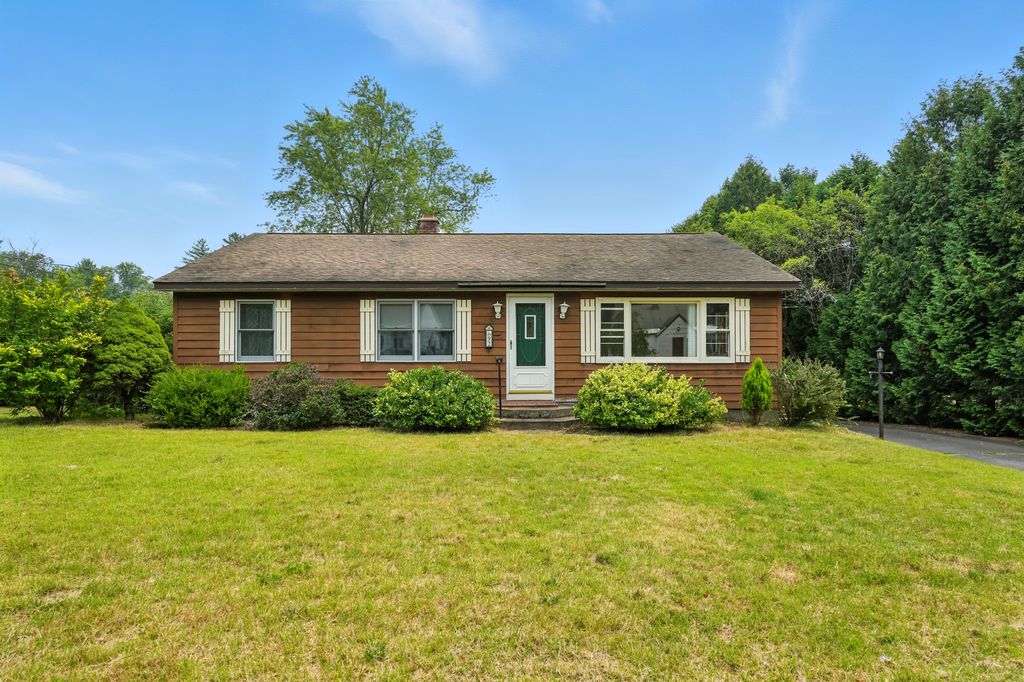 Nestled in a peaceful country setting, this cedar-sided ranch sits on nearly an acre, offering a tranquil retreat with convenient access to shopping and major routes. Inside, enjoy seamless one-level living with central air, central vacuum, and gleaming oak floors throughout the sun-filled living spaces. The kitchen offers generous storage and flows into a spacious dining area that opens to a deck overlooking the expansive back lawn—perfect for outdoor enjoyment. The home features a well-appointed full bath and three comfortable bedrooms. Additional highlights include a carriage-style shed for garden tools, garage access from the rear, and full insulation by Mass Save. A new septic system was installed in 2016. Discover comfort, charm, and convenience in this beautifully maintained home.