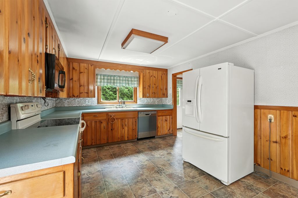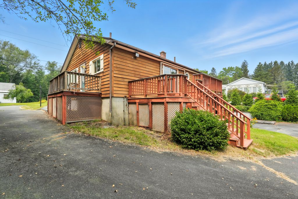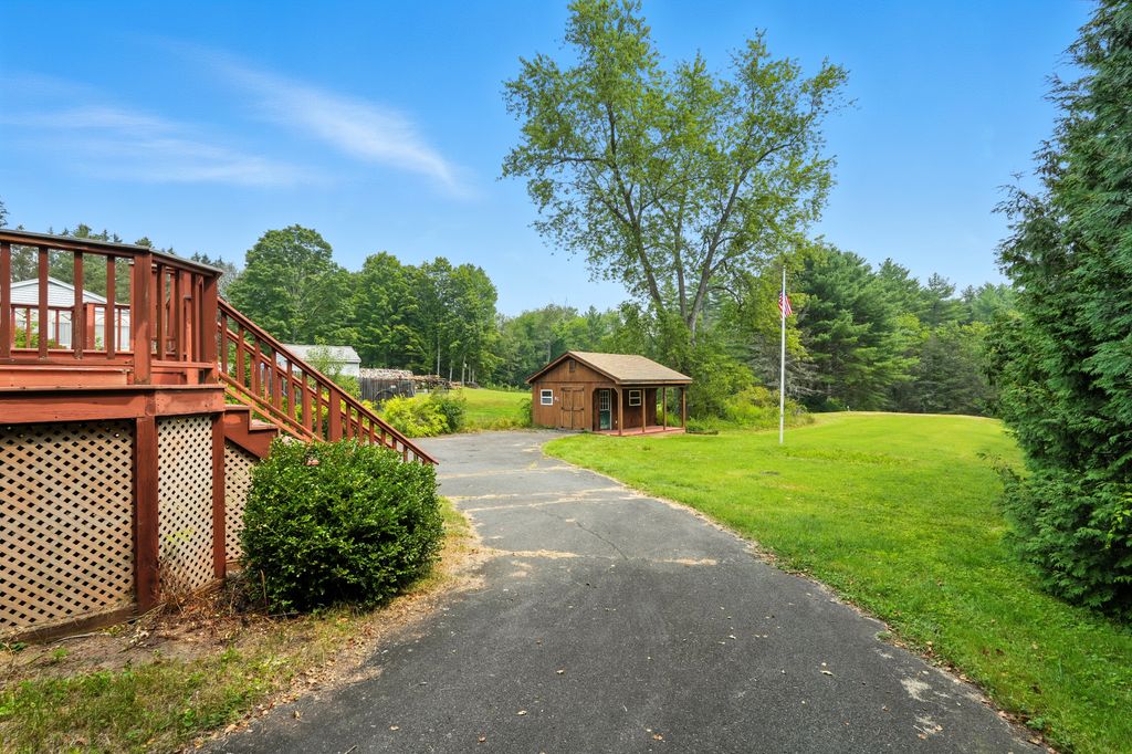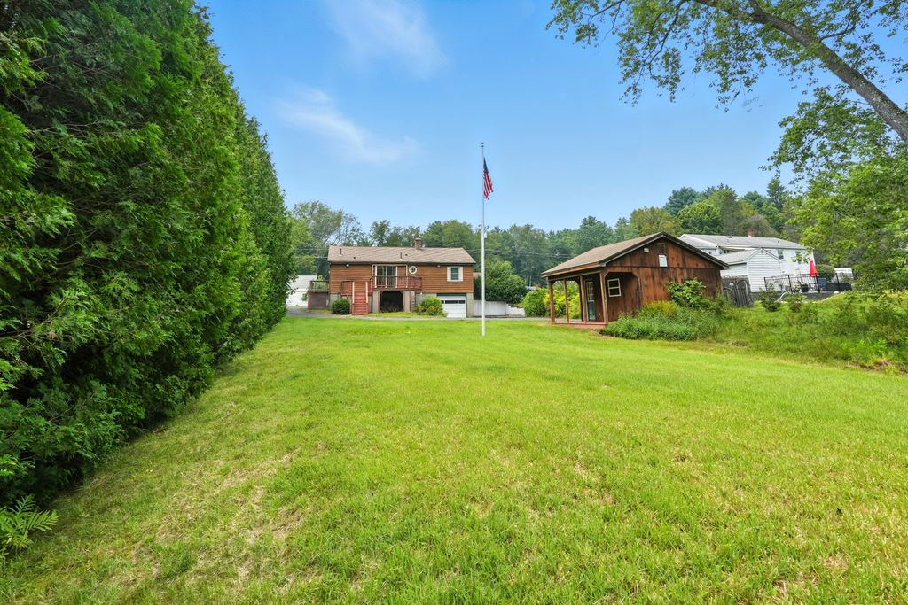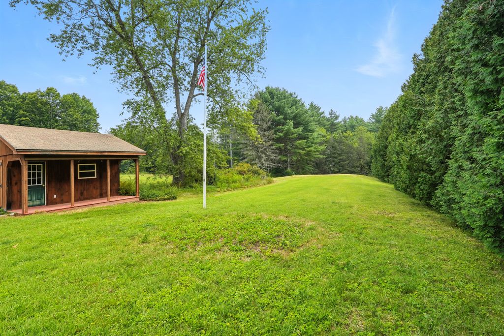 Nestled in a peaceful country setting, this cedar-sided ranch sits on nearly an acre, offering a tranquil retreat with convenient access to shopping and major routes. Inside, enjoy seamless one-level living with central air, central vacuum, and gleaming oak floors throughout the sun-filled living spaces. The kitchen offers generous storage and flows into a spacious dining area that opens to a deck overlooking the expansive back lawn—perfect for outdoor enjoyment. The home features a well-appointed full bath and three comfortable bedrooms. Additional highlights include a carriage-style shed for garden tools, garage access from the rear, and full insulation by Mass Save. A new septic system was installed in 2016. Discover comfort, charm, and convenience in this beautifully maintained home.